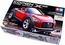Hot on the heels of its announcement at the Tokyo Motor Show 2013, the Daihatsu KOPEN future included concept car makes an appearance in the Mini 4WD line-up! The concept car has a unique twist, whereby owners can easily change the car's body panels to alter the car's appearance, much like people change their clothes. The vehicle has two stylish variants: the RMZ has a sporty, smooth and flowing silhouette, while the XMZ showcases a more aggressive and tough-looking form. The Mini 4WD models have been given different chassis to enable Tamiya to more accurately recreate the two body styles. ★The RMZ runs on the short-wheelbase VS Chassis. ★The XMZ utilizes the adaptable Super-II. ★Both models feature silver-colored wheels and low-profile tires for a sharp finish. ★: Gear ratio = 4:1.